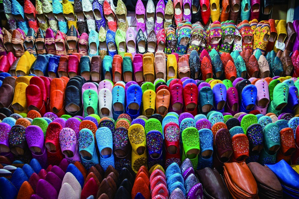 作为旅游胜地,摩洛哥的风物以浓郁色彩和鲜明造型而著称。这种特点在摩洛哥的传统拖鞋中体现得淋漓尽致,套用现在流行的网络词汇,颇有一种独特的“浮夸”风格。