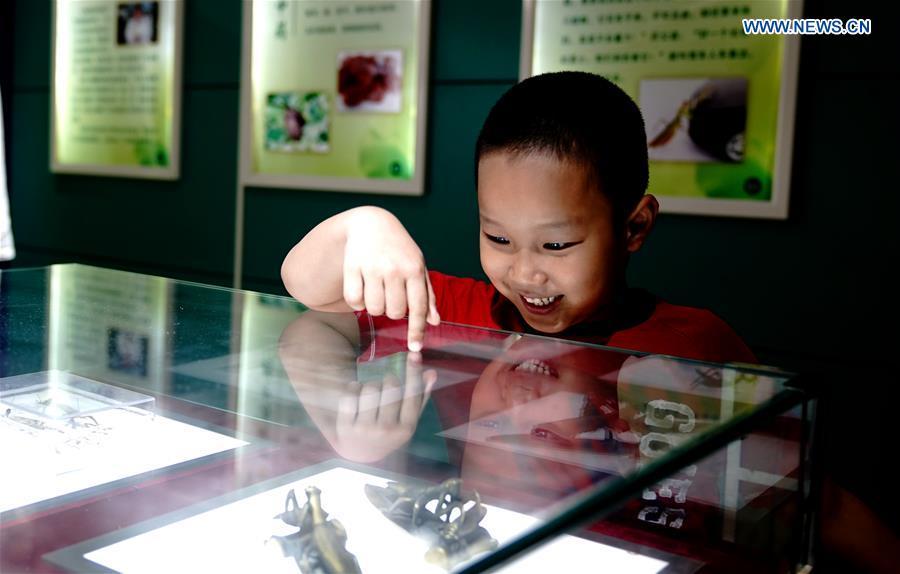 A boy visits the Shanghai Entomological Museum in east China's Shanghai, Aug. 24, 2020. During the Shanghai Science Festival from Aug. 23 to 29, the Shanghai Entomological Museum will hold science popularization livestreaming, interactive experience and other themed activities for the public. (Xinhua/Zhang Jiansong)