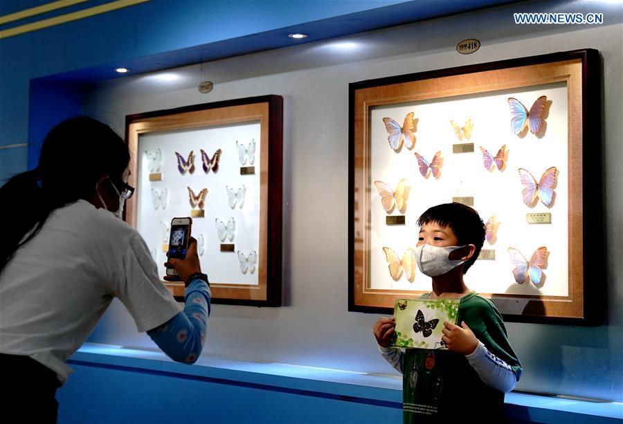 People visit the Shanghai Entomological Museum in east China's Shanghai, Aug. 24, 2020. During the Shanghai Science Festival from Aug. 23 to 29, the Shanghai Entomological Museum will hold science popularization livestreaming, interactive experience and other themed activities for the public. (Xinhua/Zhang Jiansong)