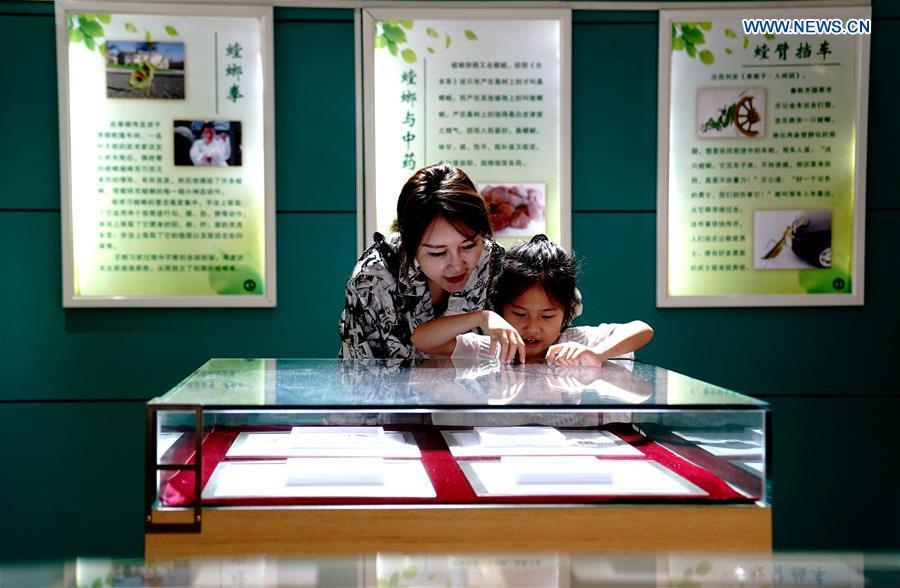 Children visit the Shanghai Entomological Museum in east China's Shanghai, Aug. 24, 2020. During the Shanghai Science Festival from Aug. 23 to 29, the Shanghai Entomological Museum will hold science popularization livestreaming, interactive experience and other themed activities for the public. (Xinhua/Zhang Jiansong)