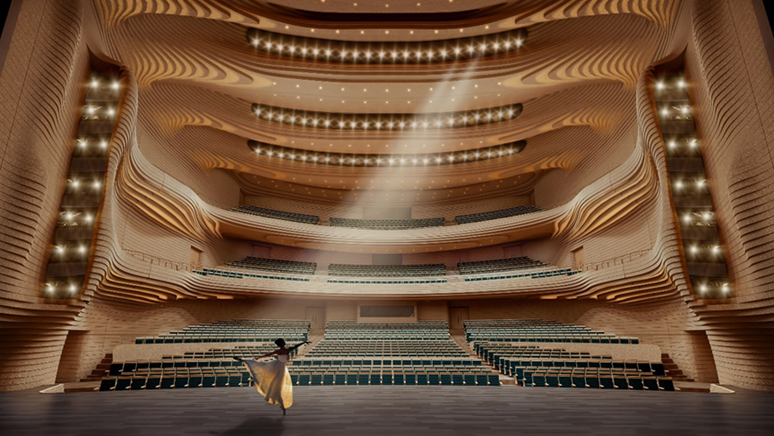 丝路中心体量庞大,包含4个特色剧场、1个音乐厅、14个艺术展厅及多功能艺术空间,单体建筑面积超过国家博物馆和国家大剧院。在世界顶级建筑空间的基础上,丝路中心旨在营造“艺术生活化”空间,提供展、演、教、创、赏全方位沉浸体验,背靠廊坊国际康乐旅游港,建设人文旅游度假区。