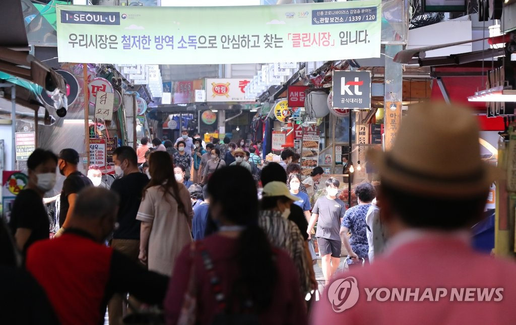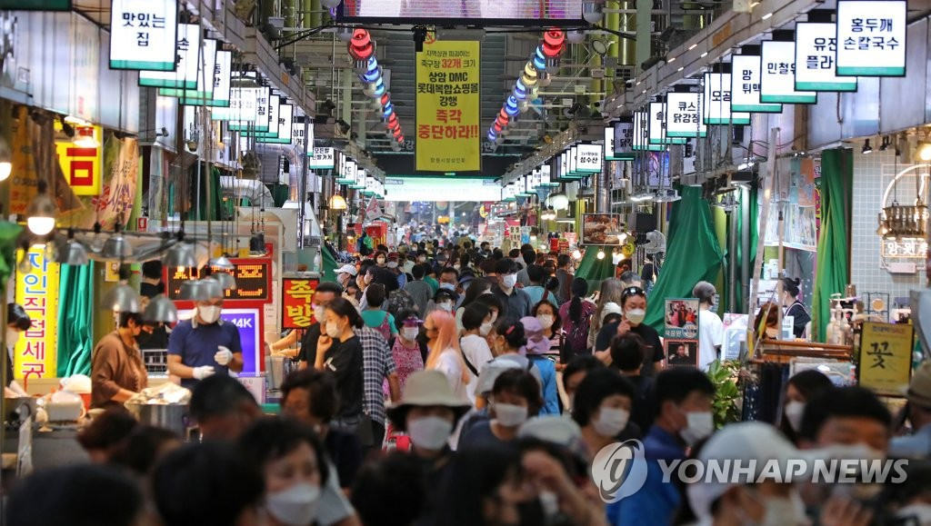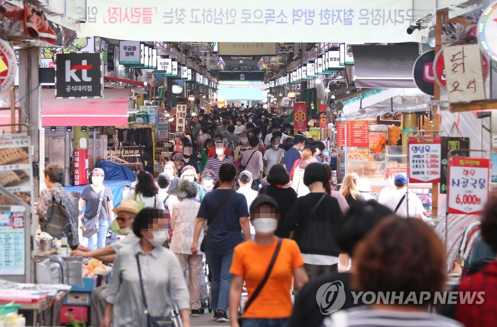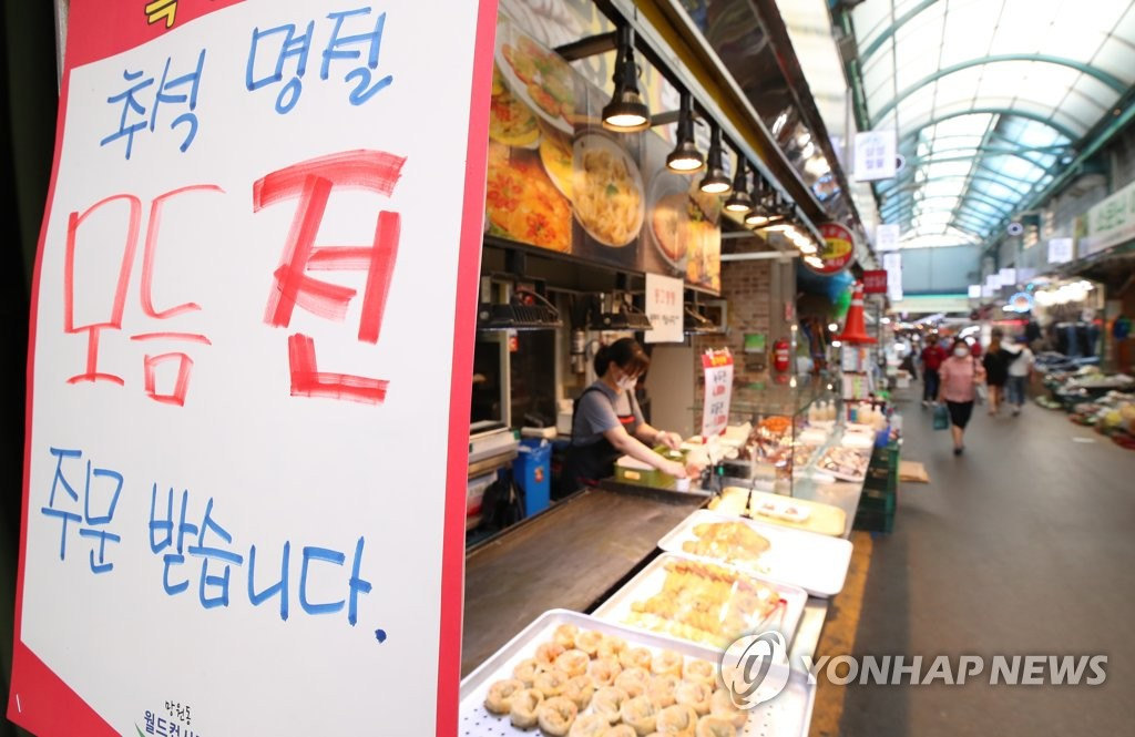 人民网讯 据韩联社报道,中秋节将近,韩国首尔地区市场热闹非凡,人头攒动。市民纷纷走上街头准备中秋食材、祭品,商贩们也大张旗鼓举办各种促销活动,迎接半月后的中秋佳节。(编译:实习生 刘佳怡 图源:韩联社)