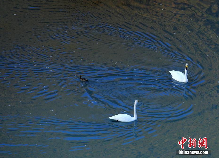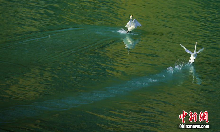 9月22日,新疆阿勒泰地区喀纳斯景区,栖息于此的天鹅在喀纳斯湖面上翩翩起舞。良好的生态环境,使喀纳斯景区成为了天鹅的固定栖息地,每年5月中下旬,便会有天鹅不断地回到喀纳斯畔休养生息,直到10月份才会离去。阿尔达克 摄