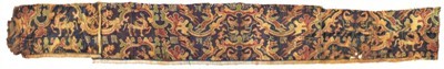 唐代立狮宝花纹锦图案极为华丽,是当时流行的“陵阳公样”。织锦以大窠花卉为环,环中是一只站立的狮子,环外是繁茂的花卉纹。这种花卉环中的动物纹样由唐初陵阳郡开国公窦师纶所创,是将西域传入的团窠联珠动物纹样与中国审美的花卉纹样相结合的产物,被称为“陵阳公样”。此件织锦采用的是辽式纬锦,显然是唐代晚期的织造技术特点,其纹样带有自由的写实风格,是“陵阳公样”在唐代晚期流行的典型代表。