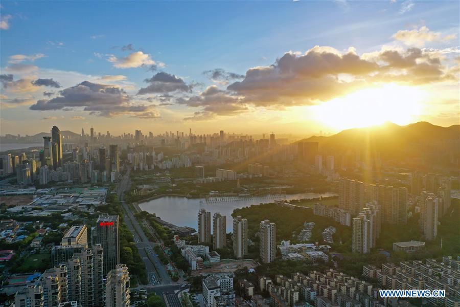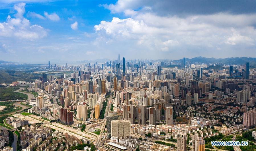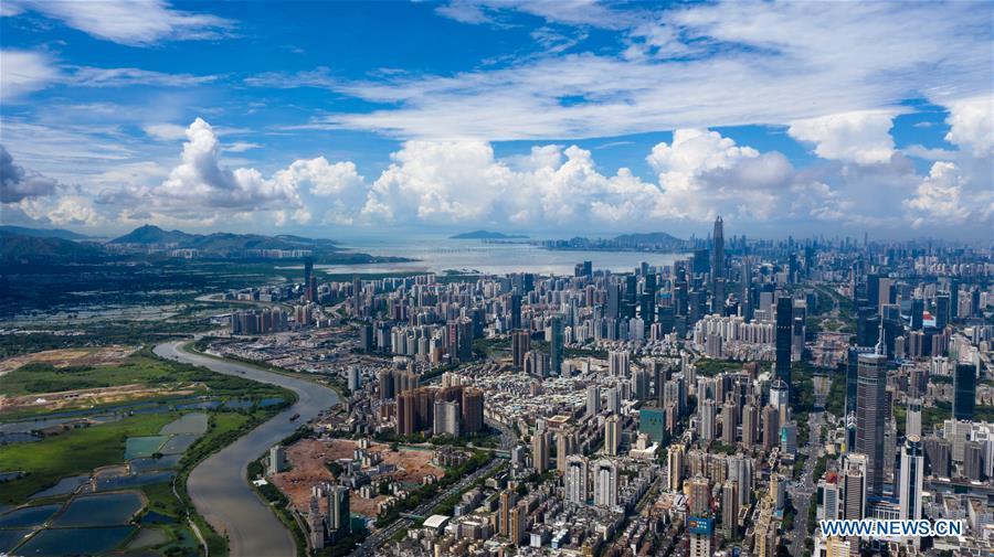 Aerial photo taken on Aug. 26, 2020 shows the city view of Shenzhen, south China's Guangdong Province. Known as a paragon of opening-up and development, Shenzhen in Guangdong Province is one of China's earliest special economic zones. Starting from a small town, it has developed into a key economic hub in the past 40 years. (Xinhua/Mao Siqian)