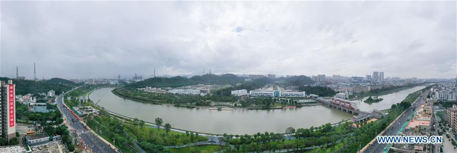 Aerial photo taken on June 15, 2020 shows the Maozhou River after ecological management in Shenzhen, south China's Guangdong Province. Known as a paragon of opening-up and development, Shenzhen in Guangdong Province is one of China's earliest special economic zones. Starting from a small town, it has developed into a key economic hub in the past 40 years. (Xinhua/Deng Hua)