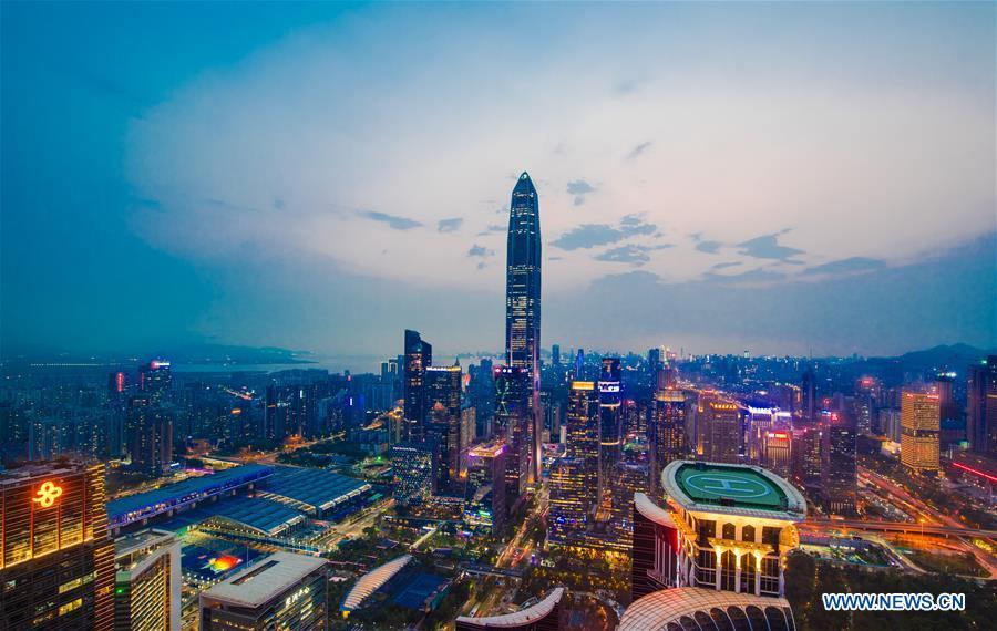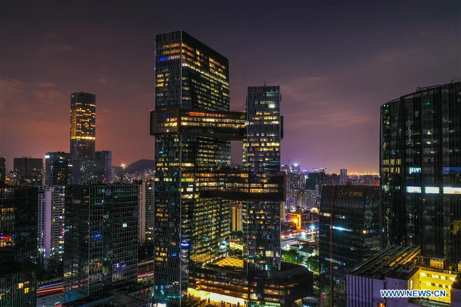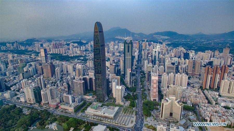 Photo taken on March 19, 2019 shows the view of the Central Business District (CBD) in Shenzhen, south China's Guangdong Province. Known as a paragon of opening-up and development, Shenzhen in Guangdong Province is one of China's earliest special economic zones. Starting from a small town, it has developed into a key economic hub in the past 40 years. (Xinhua/Mao Siqian)