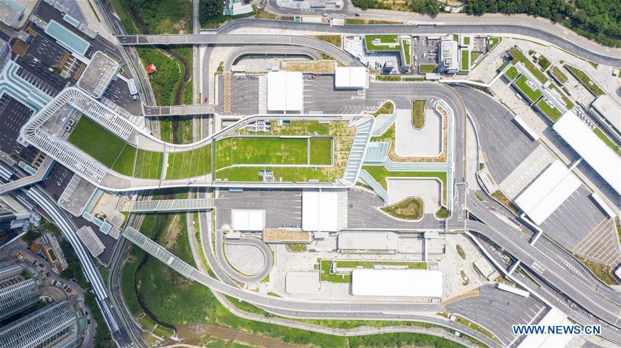 Aerial photo taken on Aug. 26, 2020 shows the Liantang Port/Heung Yuen Wai Boundary Control Point at the Hong Kong-Shenzhen boundary in south China. Known as a paragon of opening-up and development, Shenzhen in Guangdong Province is one of China's earliest special economic zones. Starting from a small town, it has developed into a key economic hub in the past 40 years. (Xinhua/Mao Siqian)