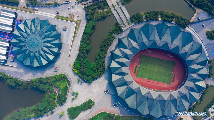 Aerial photo taken on Sept. 5, 2020 shows the Universiade Stadium in Longgang District of Shenzhen, south China's Guangdong Province. Known as a paragon of opening-up and development, Shenzhen in Guangdong Province is one of China's earliest special economic zones. Starting from a small town, it has developed into a key economic hub in the past 40 years. (Xinhua/Mao Siqian)