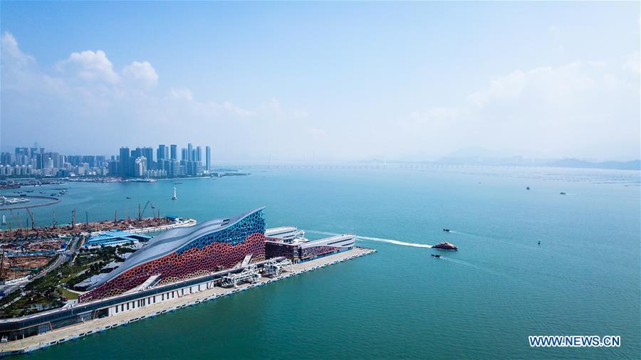 Aerial photo taken on Oct. 15, 2019 shows the Shekou cruise home port in Nanshan District of Shenzhen, south China's Guangdong Province. Known as a paragon of opening-up and development, Shenzhen in Guangdong Province is one of China's earliest special economic zones. Starting from a small town, it has developed into a key economic hub in the past 40 years. (Xinhua/Mao Siqian)