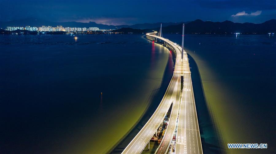 Aerial photo taken on Sept. 20, 2020 shows the Shenzhen Bay Bridge in Shenzhen, south China's Guangdong Province. Known as a paragon of opening-up and development, Shenzhen in Guangdong Province is one of China's earliest special economic zones. Starting from a small town, it has developed into a key economic hub in the past 40 years. (Xinhua/Mao Siqian)
