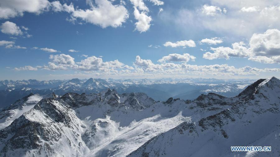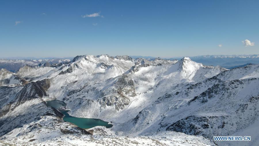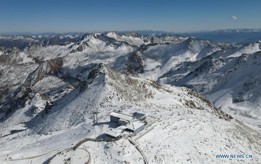 Aerial photo taken on Nov. 14, 2020 shows a view of the Dagu glacier scenic spot in Heishui County of Aba Tibetan and Qiang Autonomous Prefecture, southwest China's Sichuan Province. (Xinhua/Xu Bingjie)