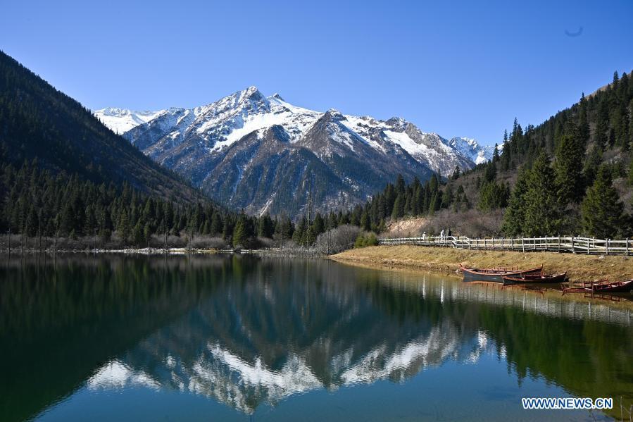 Photo taken on Nov. 14, 2020 shows a view of Dagu Lake at the Dagu glacier scenic spot in Heishui County of Aba Tibetan and Qiang Autonomous Prefecture, southwest China's Sichuan Province. (Xinhua/Xu Bingjie)