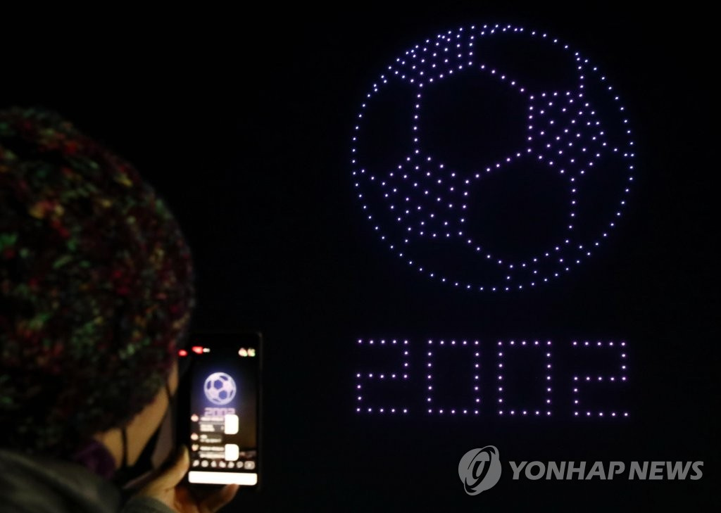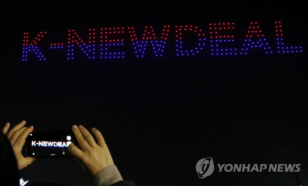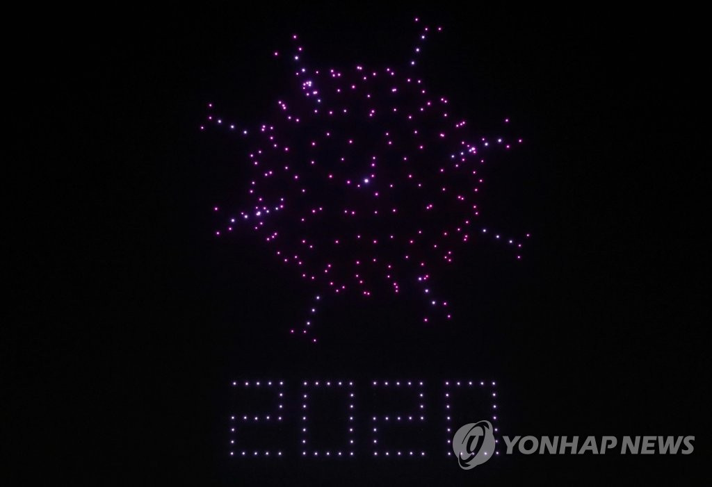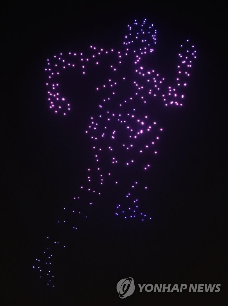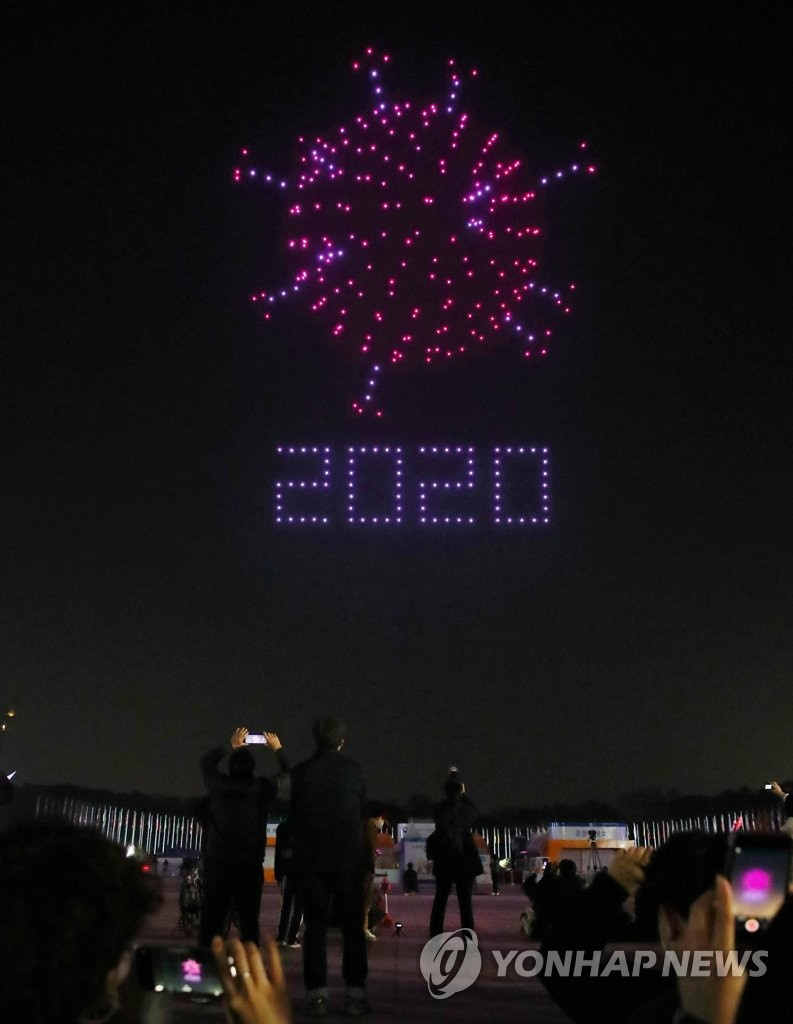 人民网讯 据韩联社报道,13日,首尔松坡区奥林匹克公园和平门上空举办一场别开生面的无人机表演秀,吸引大批市民前来观看。据悉,本次表演秀以“韩国版新政”为主题,韩国国土交通部出动了300多架无人机,场面十分壮观。与此同时,该活动旨在向抗击疫情的韩国民众传递温暖与力量。(编译:实习生 刘佳怡 图源:韩联社)