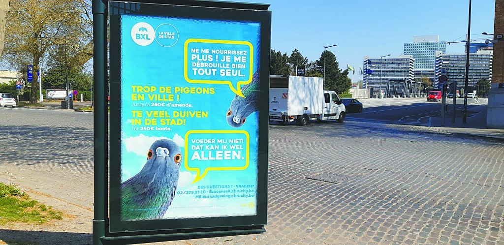布鲁塞尔的各个公园,都会张贴一张告示,告知游客不要投喂鸽子,否则会收到高达250欧元的罚单。当地政府部门为了控制鸽子的种群规模,向鸽子投喂含有安全剂量避孕药的玉米,如果鸽子吃了游客投喂的美味饼干、面包,就不会去吃政府部门投喂的玉米,鸽子的数量就无法减少。