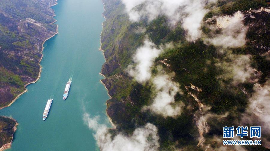 这是重庆奉节县长江三峡的瞿塘峡一带景色(2019年3月28日摄,无人机照片)。新华社记者 王全超 摄