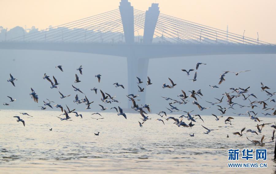 这是11月13日在四川省泸州市东门口长江边拍摄的红嘴鸥。新华社发(牟科 摄)