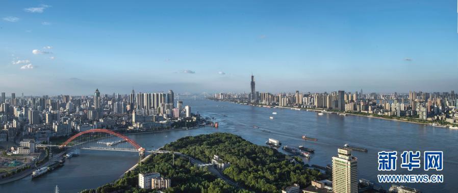 俯瞰长江和汉江交汇处的湖北武汉汉口龙王庙江段(拼接照片,2017年7月28日摄)。新华社记者 熊琦 摄