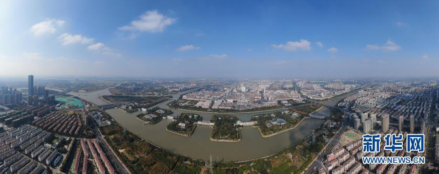 这是11月14日拍摄的位于江苏省扬州市的江都水利枢纽(无人机全景照片)。新华社记者 季春鹏 摄