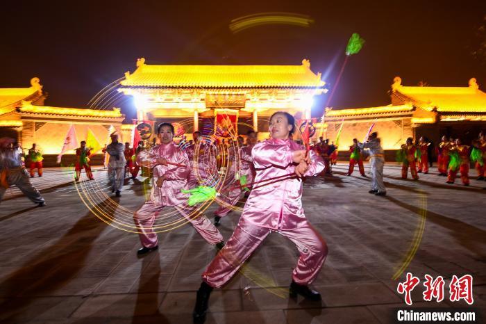 当晚,魁星楼前,游客驻足。五彩灯光投射在楼阁之上,春夏秋冬岁月景象流转,旧时学子寒窗苦读、金榜题名的历史被娓娓道来;古县衙门口,暗夜当中,国家级非遗“飞火流星”上下翻飞、星光流转。应和着掌声、呐喊,太原锣鼓鼓声震天。