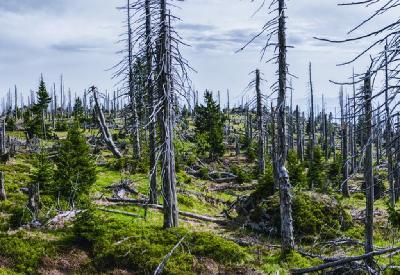 我查阅资料方知,德国这样的森林死亡面积已经达11万公顷。我采访了一位弗莱堡大学毕业的林学博士,他解释说,黑森林中树木大面积死亡一个最重要的原因是气候变暖。黑森林的年平均气温在过去的30年内上涨了1摄氏度。现在的年平均气温是10.1摄氏度。如果不能抑制气温变暖的趋势,到本世纪末,黑森林地区的年平均气温将上升2.5到3.6摄氏度。2003年,热浪袭击德国,这里曾经有过42摄氏度的高温纪录。气候变暖速度这么快对于为人类提供新鲜空气的森林来说几乎是毁灭性的。因为高温天气会造成害虫的大量繁殖。黑森林地区有一种树皮甲虫,这种甲虫会依附在树皮之下蚕食树木生长所需要的营养成分,造成树木死亡。气候异常也给黑森林造成很大伤害。1996年的“路塔”与2020年的“萨比娜”暴风吹倒了黑森林中的不少参天大树。