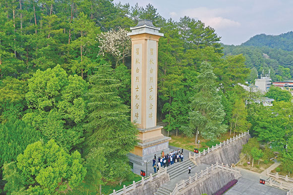 在古城长汀,背靠罗汉岭,高大的瞿秋白烈士纪念碑静静地矗立着。