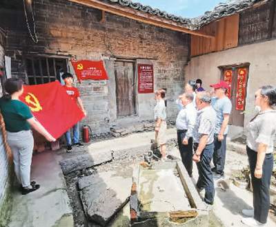 一波又一波的党员干部走进位于安徽省桐城市的方家仓,他们带着敬仰来追寻方家仓的红色踪迹,汲取精神动力。党员们展开党旗、举起拳头对着墙壁上的“入党誓词”庄严宣誓。