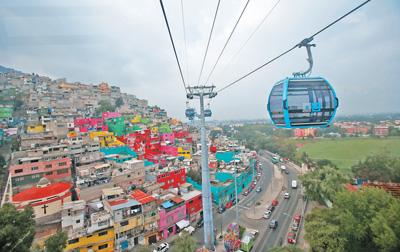 日前,墨西哥首都墨西哥城的空中“电缆巴士”2号线在伊斯塔帕拉帕区投入运营。此前不久,连接墨西哥城库奥特佩克社区和印第奥贝尔德地铁站的1号线(见上图,新华社发)也已全线贯通。“电缆巴士”这一新公交系统的形成,为缓解墨西哥城的交通拥堵问题提供了新思路。