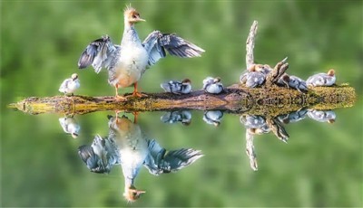 我是中华秋沙鸭,我非常自豪,因为与生俱来的秉性,我对水质极其挑剔,所以我又担任起“生态试纸”的重任,成为水域生态环境的重要指示物种。但凡有我栖息的区域,都是免检的生态环境,我的“矫情”却成为我的优势,江南河流湖泊频频向我们发来旅居的邀请。如今冬季,长白山成长的中华秋沙鸭旅居在江南的很多湖泊中,谱写着大环保和大生态的自然篇章。