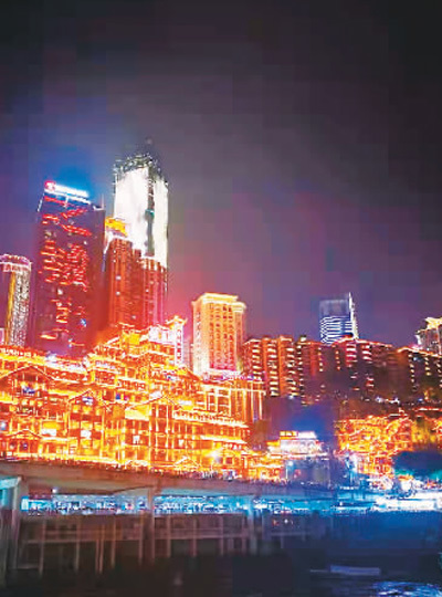 山城的路像迷宫,南滨路和北滨路属另类。路不宽,双向四车道,但去和来的车道是分离的,且红绿灯少,上下班高峰期竟也不甚拥堵。隔了长江或嘉陵江远眺对岸的路,胆小的一定惊讶万分——对岸的车像跑在半空中,支撑那些路的钢筋混凝土柱子站在江水里,正把路和车稳稳举着。正恍惚间,咣当咣当的轻轨列车又从一座楼房里钻出来了,依然跑在空中,那是山城声名在外的网红打卡景点“轻轨穿楼”。