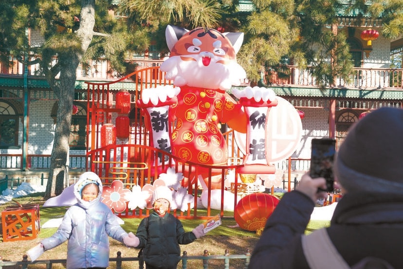 北京动物园有5只东北虎,今年市公园管理中心将一只10岁的雌性东北虎“萌萌”打造出镜,作为11家市属公园的新春生肖吉祥物,以滑雪、贺新年等多样造型装点公园节日环境,烘托春节游园氛围。
