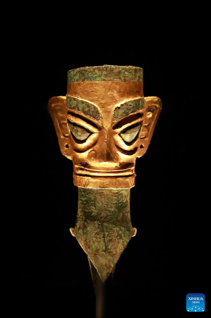 Photo taken on March 29, 2022 shows an exhibit at the Sanxingdui museum in Guanghan, southwest China's Sichuan Province.