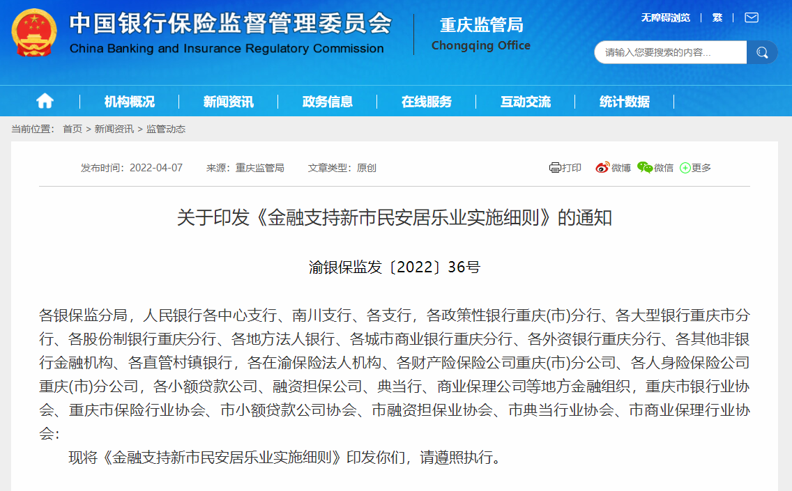 【环球网财经综合报道】日前,重庆银保监局、人民银行重庆营管部、重庆市金融监管局联合印发《金融支持新市民安居乐业实施细则》(以下简称《实施细则》),从促进创业就业、满足安居需求、助力培训教育、提升健康保险、加大养老保障、优化基础金融服务等方面改善对新市民的服务力度。