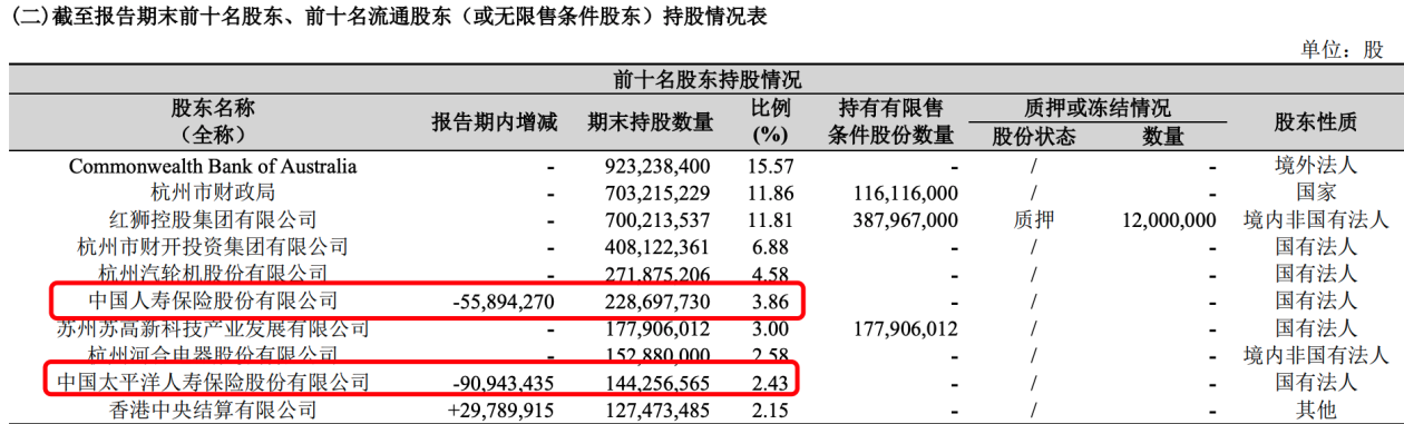 2021年4月2日,杭州银行收到股东太平洋人寿发来的《关于减持杭州银行股份计划的函》,随后开启了首轮减持。截至7月30日公告,太平洋人寿减持公司股份5929.997万股,占公司普通股总股本比例为1.00%,减持总金额为9.14亿元。