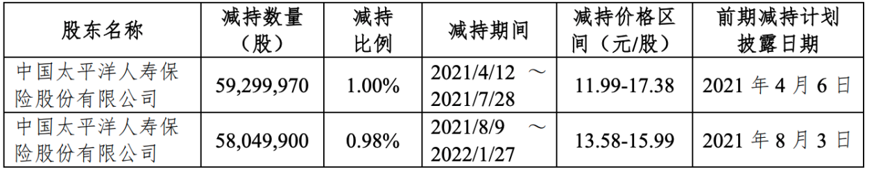 实际上,从去年起,太平洋人寿已经实施两轮减持计划。