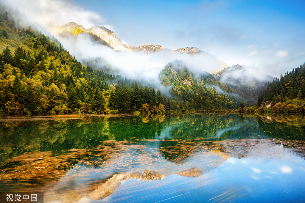 这是一个山水胜地,有着水的各色形态:远处的雪山哺育着深110米的长海,有如蓝色水晶一样的浅浅的五色池,有整齐的苇子和水流交相呼应的箭竹海;低瀑布、高瀑布、宽瀑布、窄瀑布、多级瀑布,哗哗作响,泠泠动听;宽阔的水坡,缓缓的水流。树在水中有如盆景,水在树中充满激情。