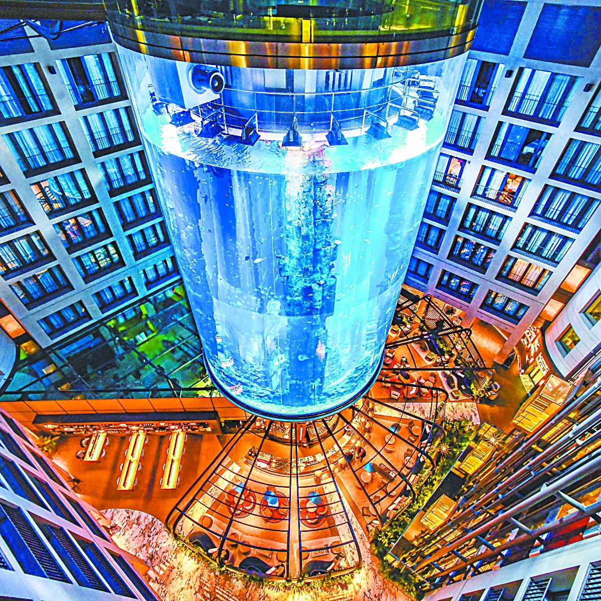 【环球时报驻德国特约记者 沈杰森】位于德国首都柏林大教堂附近的丽笙酒店,因为在大厅内建起了世界上最大的独立圆柱体水族馆(如图),使它拥有了一块揽客的金字招牌,每年吸引很多游客到访住宿。水族馆最近进行了一次翻新,《环球时报》特约记者特地前去探访。
