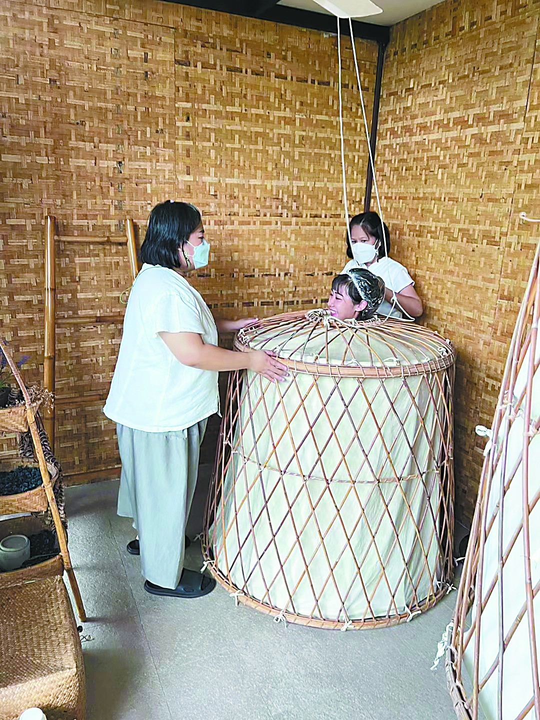 以前主要是产后妈妈使用这种疗法,用于收缩子宫和促进产后伤口的愈合,后来人们发现,熏蒸后皮肤红润有弹性,而且有助于身体排毒和减肥,所以这一项目深受本地人的喜爱,慢慢地,名声也传出去了,越来越多外地人来到这里治疗和体验,因而本地人把这一类的体验集中起来做成一个养生社区。