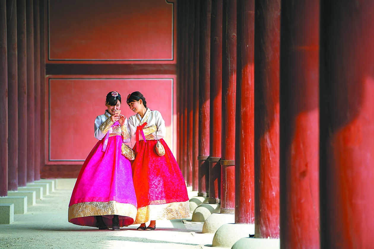 【环球时报驻韩国特约记者 林龙优】位于韩国光化门北面的景福宫是首尔市内最古老、规模最大的一座宫殿,也是很多人来首尔必去的景点之一。初到景福宫的游客,除了被它深厚的历史文化吸引外,还会被穿着韩服漫步在古宫的游客所吸引。很多外国人不知道,只要穿上韩服,不管是韩国人还是外国人都能免费进园。为了推广韩服传统,韩国政府自2013年起推出穿韩服免古迹门票活动(如图)。
