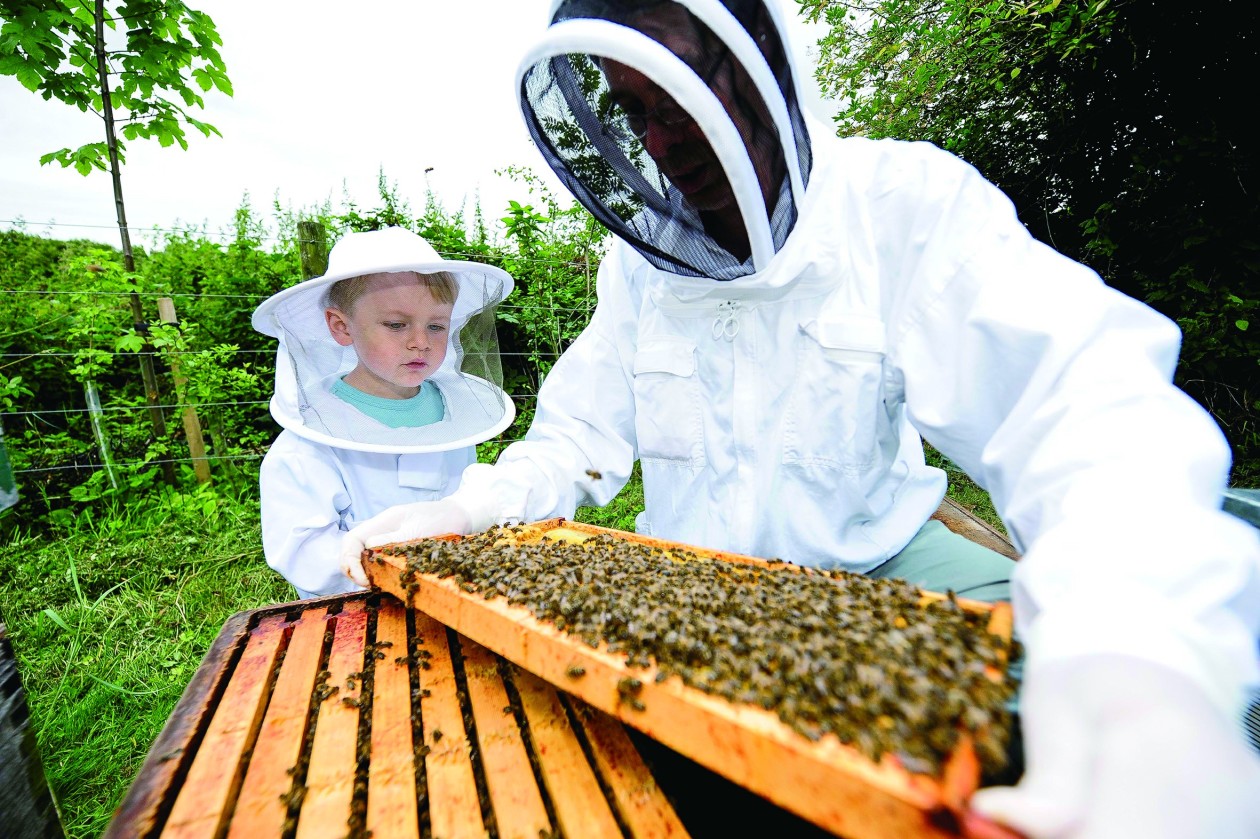 许多城市养蜂人其实是将养蜂当作减压以及接触大自然的一种休闲生活方式。近年来,有些专业养蜂人还会在夏天开设养蜂体验课程。参与者可身穿专用防护服近距离观察蜂巢内部,了解等级森严的蜜蜂社会和酿蜜过程,同时亲手参与照料蜜蜂的过程(如图)。为了培养年轻人对养蜂的兴趣,英国养蜂协会还有专门针对青少年的养蜂课程。养蜂协会的会员证书不仅面向成年人,孩子也可申请,只要通过专门的测试就可获得证书。