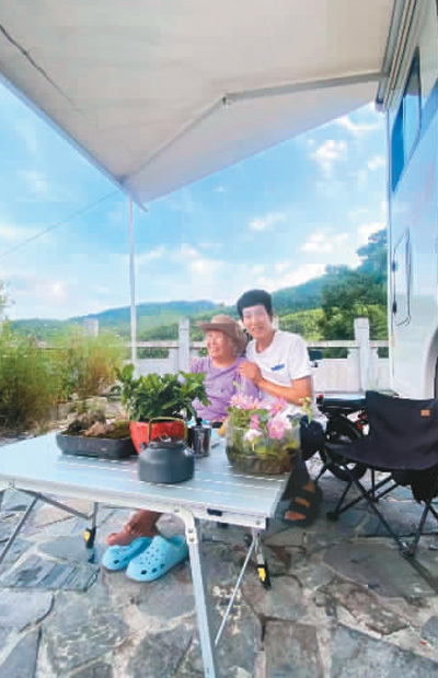许涛的妈妈喜欢花,母子用植物为房车增添了“家”的氛围。房车里,摆放着从龙脊梯田、大洞竹海、漓江沿岸等地买来的鲜花,花儿记录着他们的旅途轨迹。许涛还养了盆景,里面生长着在各地采撷的苔藓。