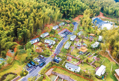 安徽省芜湖市繁昌区孙村镇中分村,游客在繁昌慢谷旅游度假区里的途居马仁山房车露营地游玩。肖本祥摄(人民图片)