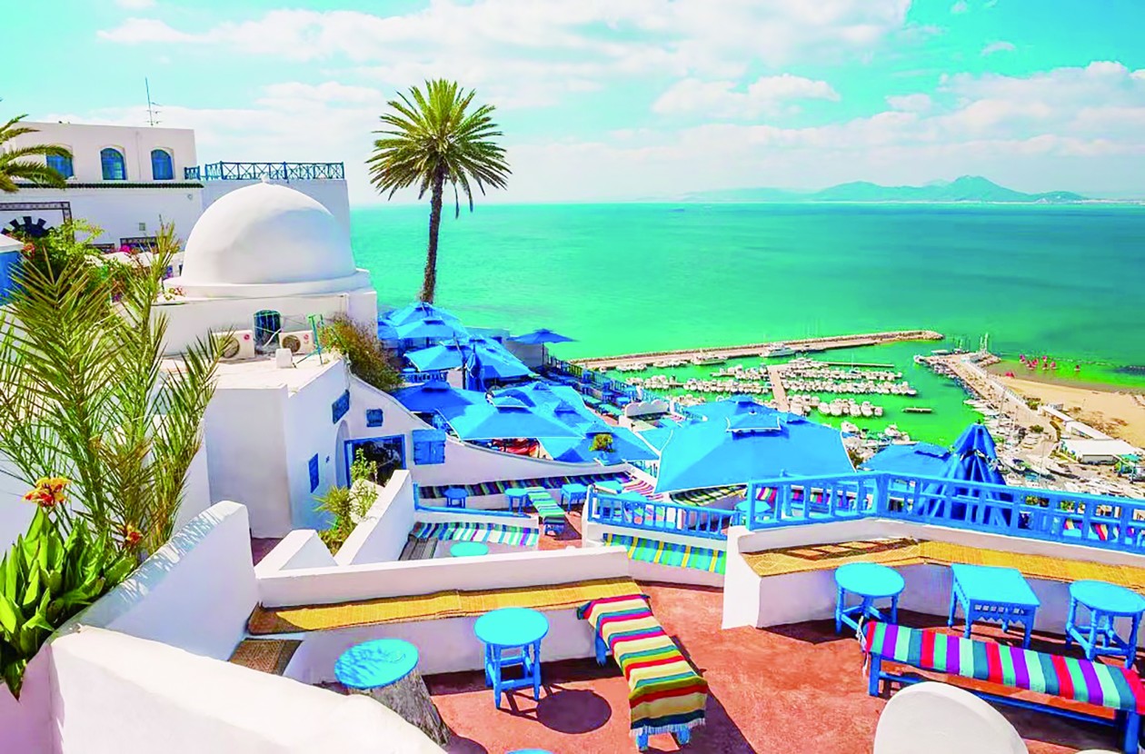 突尼斯“地中海丝路组织”主席巴斯利在接受《环球时报》记者采访时说,其实,在西迪· 布·萨义德小镇,蓝和白这样的色系组合之所以显得完美、相得益彰,还因为有另外一些颜色的烘托和帮衬,如各家房前屋后的大片绿植,草地上姹紫嫣红的各类花朵,头顶上空一碧如洗的蓝天,以及山脚下如宝石一样旖旎摇曳的蓝色地中海波光等。“如果从空中看,小镇建筑屋顶蓝白相间的色彩更是如梦如幻、摄人心魄。”巴斯利感慨道。