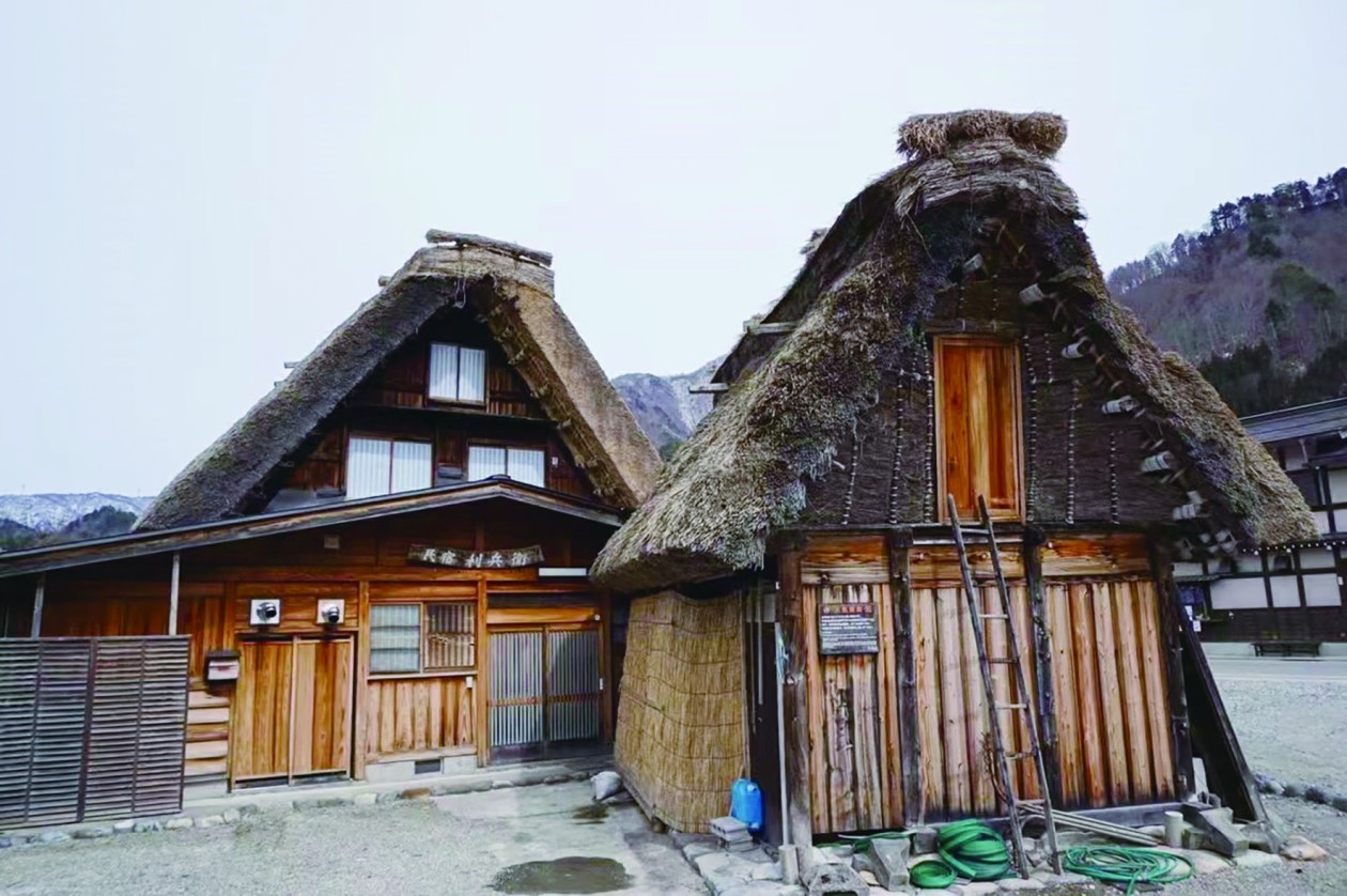 日本茅草顶民居最具代表性的地区是岐阜县的白川乡和五屹山一带,这里的合掌村落于1995年入选世界文化遗产名录。此地冬季多降雪,因此屋顶坡面很陡,其形状酷似拜佛时双手合十状,故而被称为“合掌”。借着世界文化遗产的光环,合掌村落等地区的茅草顶民居越来越受关注。