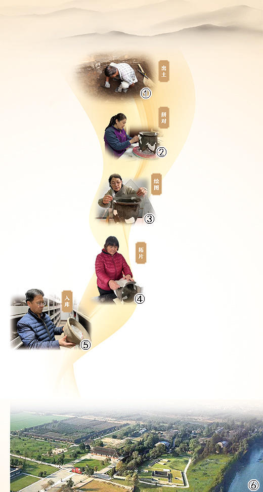 图①为安阳工作站供图 图②至图⑤均为本报记者王者摄 图⑥:殷墟遗址外景。张洪斌摄