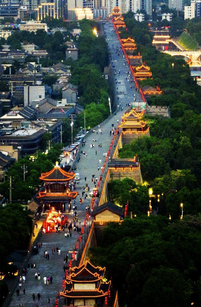 Xi'an boasts well-preserved ancient city walls used as fortifications for military defense. The best-known city walls were built from 1370 to 1378 during the Ming Dynasty (1368-1644) with a total length of 13.7 kilometers.