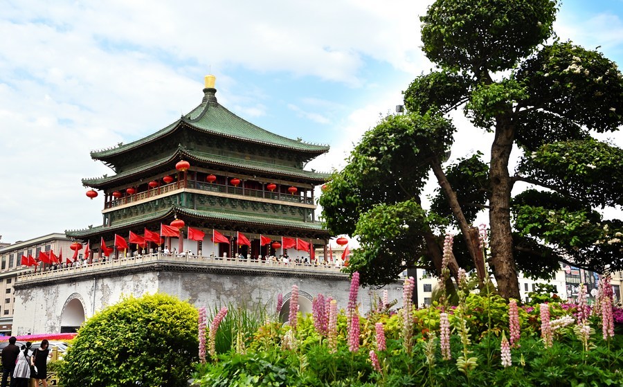 This photo taken on May 1, 2023 shows a view of the Bell Tower in Xi'an, northwest China's Shaanxi Province.(Photo by Zou Jingyi/Xinhua)