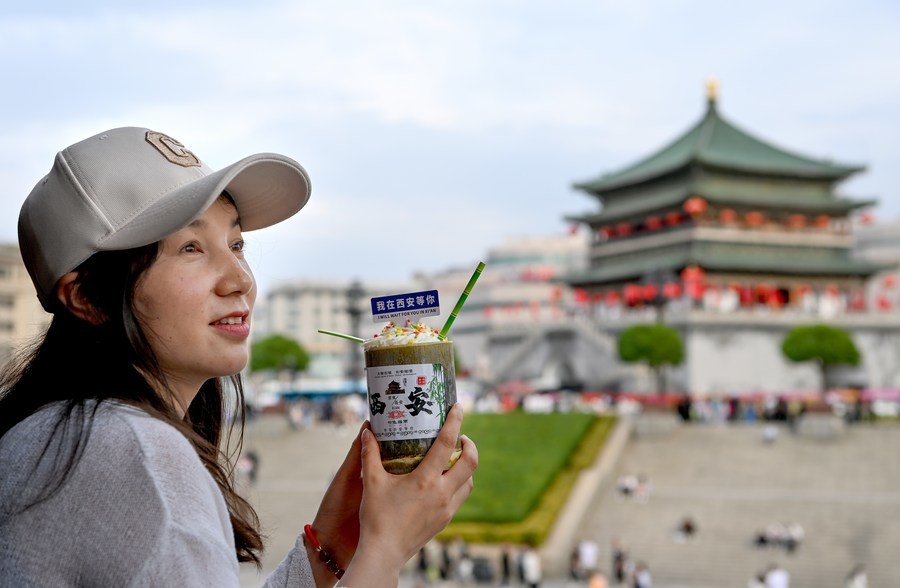 Tourists visit the Bell Tower in Xi'an, northwest China's Shaanxi Province, May 1, 2023.(Xinhua/Liu Xiao)