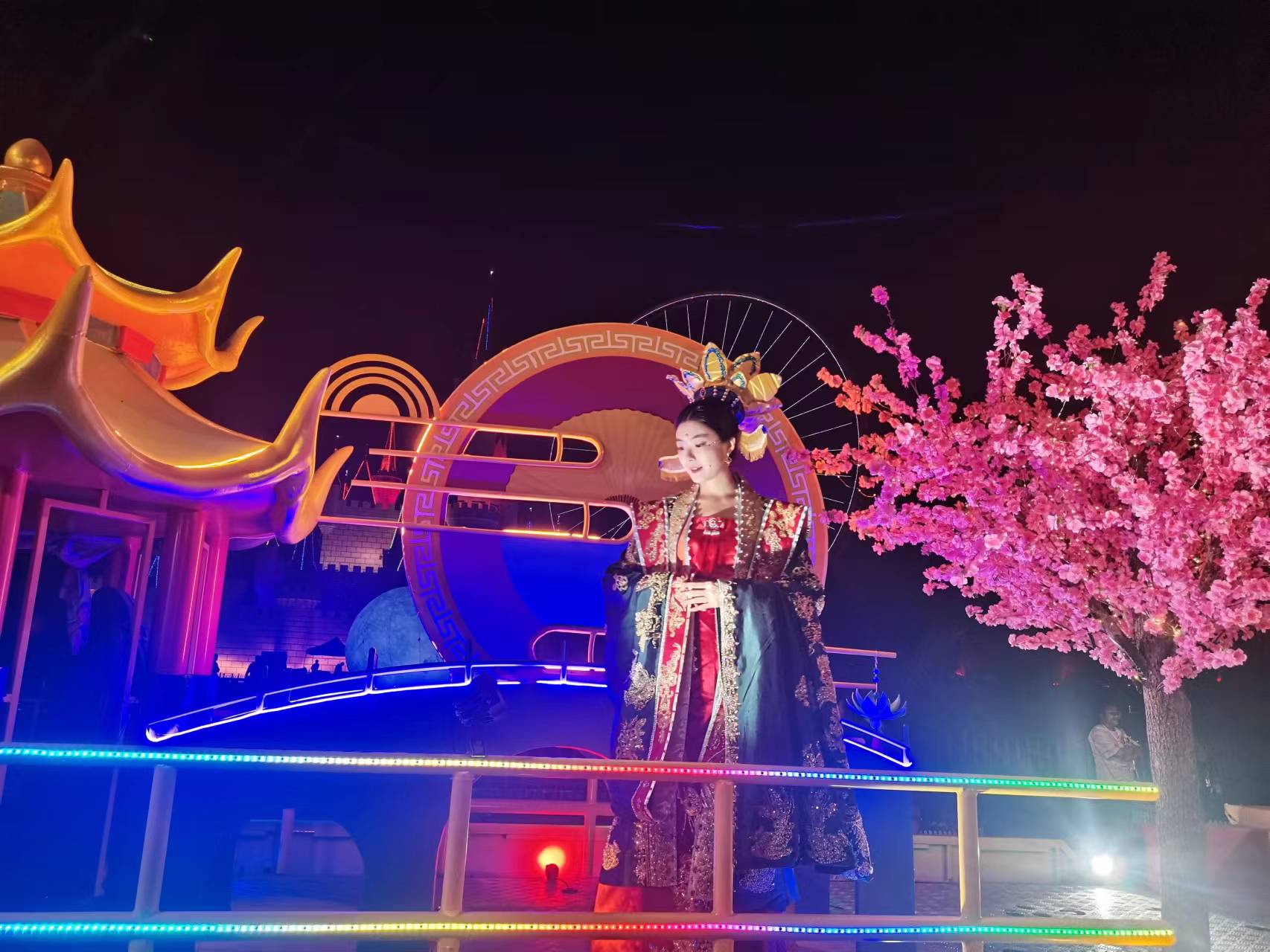 国风舞蹈、情景剧、汉服秀等定点演出,360度全场景沉浸式氛围,让您身临其境;国风花车巡游表演方阵,匠心独具的国潮主题花车,相映成趣、各绽其美,是游客拍照打卡,观赏互动之绝佳体验;星梦湖水舞台,汉唐新婚礼仪、国潮T台秀展示绚烂美学,游客放一盏祈福灯,祈国泰家安;园小姐乘龙快婿,对诗招亲,等你来战;诗词润心灵,国潮溢乐园,国风NPC即兴对诗互动;国潮游戏嘉年华,体验投壶、射箭、击铜钱,沉浸式体验各种国潮游戏玩法;摩天轮、飞炫云霄等乐园经典游艺项目狂欢,让您畅玩的同时,更可自如的穿梭于古典与现实。