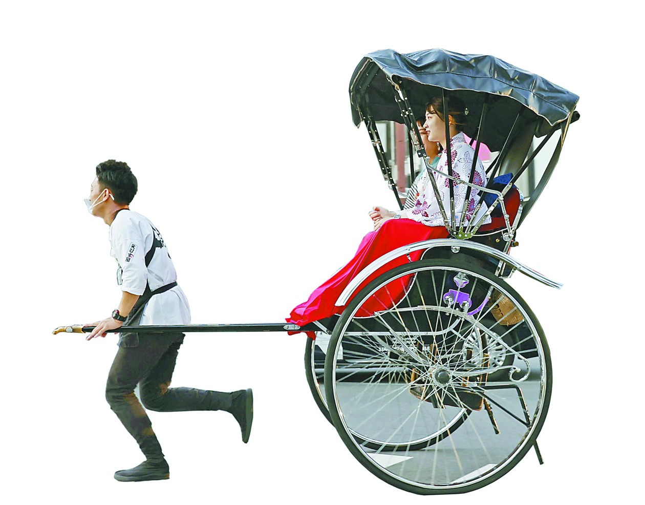 到过日本的游客可能都在街头看到过人力车——车身漆黑锃亮,车轮半人多高,黑色顶篷,朱红内毡,车前方是打扮利落的年轻车夫,在古街木屋旁,成就一道风景。